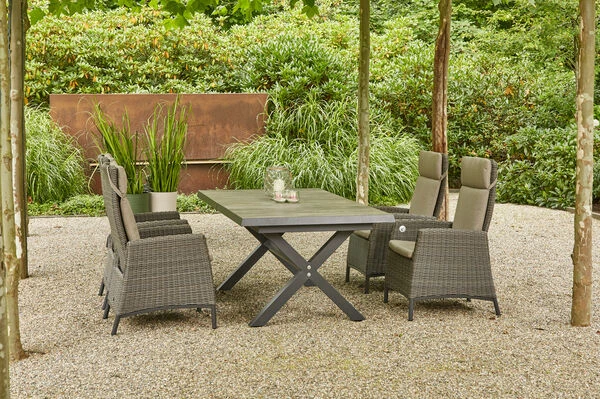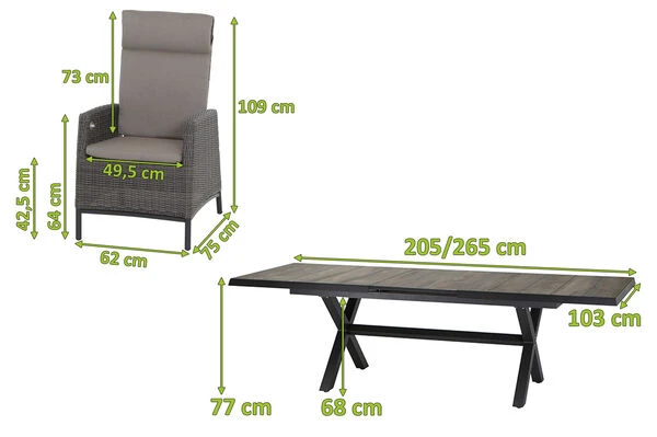 SIENA GARDEN Sincro/Amira Dining Set, anthrazit/grau, Alu/Gardino®-Geflecht/Keramik, ca. 200-260x103cm, inkl. 4 Diningsessel, verstellbar