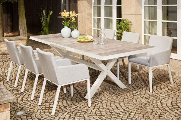 1x SIENA GARDEN Sincro Ausziehtisch, matt weiß-grau/washed grey, Alu/Keramik, 200/260×100 cm, synchroner Auszugsmechanismus (H48017)