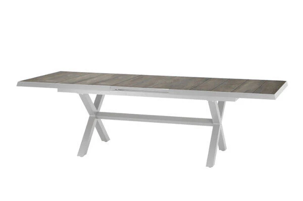 SIENA GARDEN Sincro Ausziehtisch, matt weiß-grau/washed grey, Alu/Keramik, 200/260×100 cm, synchroner Auszugsmechanismus