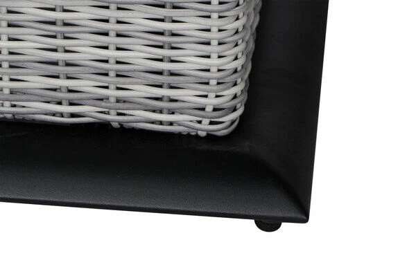 | Stabiles Polyrattan-Geflecht Das halbrunde Polyrattan-Geflecht in der Farbe ice grey ist besonders stabil, wasserabweisend und wetterfest. |