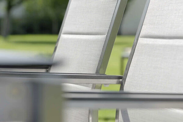 | Hochwertige Materialien Edelstahl, Aluminium und Textilene werden sorgfältig ausgesucht und verarbeitet. Aufgrund ihrer Wetterfestigkeit und Eleganz sind sie ein idealer Baustoff für Gartenmöbel. |
