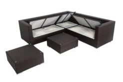 Das Set besteht aus aus einem 2-Sitzer Sofa, zwei Sesseln, einem Hocker und einem Tisch mit den Maßen von ca. 140 x 80 x 66 cm. Der Hocker kann je nach Bedarf als zusätzliche Sitzmöglichkeit genutzt werden oder als Fußhocker, um nach einem langen Arbeitstag einfach mal die Füße hochzulegen. Die im Lieferumfang enthaltenen Polster aus 100% Polyester sind extra für den Außeneinsatz wasserabweisend imprägniert und sorgen mit einer Dicke von ca. 12 cm für zusätzlichen Sitzkomfort. Reißverschlüsse ermöglich Ihnen hier eine besonders einfache Reinigung. Zum Schutz Ihrer Terrasse sind die Möbel zusätzlich mit Fußkappen ausgestattet, welche unschöne Kratzer vermeiden.