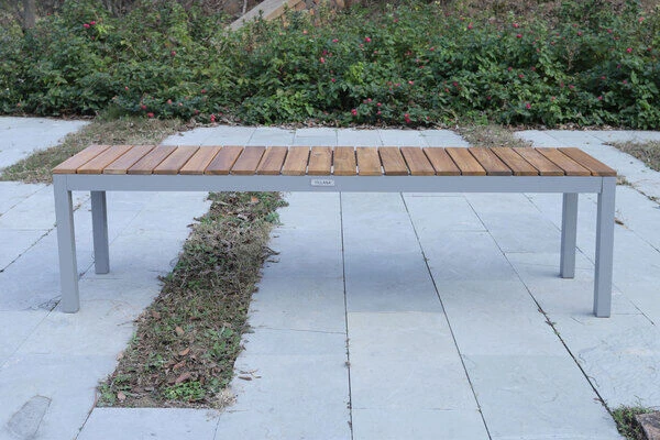 2x Villana Bank ca. 165 x 40 x 45 cm, aus silberfarbenem Aluminium und FSC-Akazienholz