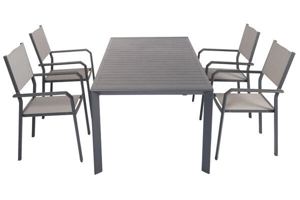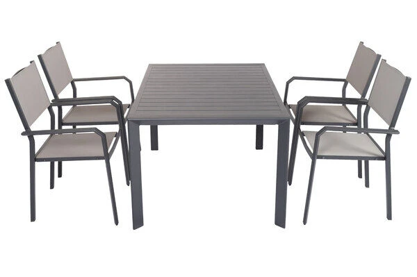 5-teilige Esstischgarnitur von VILLANA aus Aluminium/Textilene in anthrazit/grau mit Platz für 4 Personen